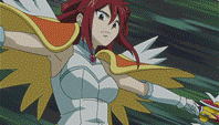 Crystal Armor: This is Anna's last resort armor. She refuses to use her zanpakuto to sample Van's new zanpakuto ability instead trusting in his former zanpakuto ability. Upon using this armor Anna dons a suit of pink armor with a simple breastplate joined to the collar, which sports a heart between two wings-shaped decorations with a lighter pink coloration; the pauldrons possess a similar structure, with the two plates constituting each of them being surmounted by small wings. The gauntlets that cover her arms are adorned with feather-shaped decorations pointing backwards. The waistguard is made up of plates attached to the breastplate, with a belt around Anna’s waist, and a short skirt covering her upper thighs. Her greaves reach up to the middle parts of her bare thighs, possess feather-like ornaments on the upper edges and below her knee guards, which have similar motifs carved on them, and each sports a pair of small wings, one attached to the knee guard and one to her ankles. The armor is completed by a large tiara adorning Anna’s head, with feather-shaped protrusions jutting out from it, and by a large pinkish white cape. In this form, she specializes in utilizing Van's crystallizing ability to crystallize anything with with a mass. She only has one known technique in this form.
