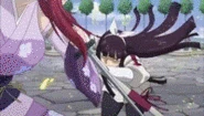 Kotate (抗盾, Anti-Sheild): By reversing the process of creating barriers and rejecting the localized oxygen instead of compressing it, Anna is able to create a large focused blast of heated air similar in nature to that of the Renga Aratame technique. However, this technique uses both of Anna's blades in this form as a focus to maintain it as she must constantly heat the oxygen that becomes displaced creating a miniature vacuum that causes lightning to form and condense itself into a high pressured energy blast.