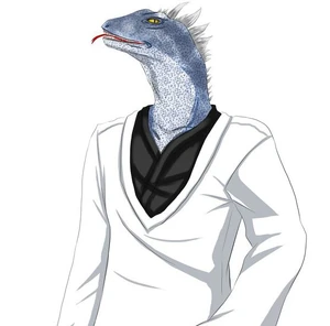 Hachū is an anthropomorphic reptile, with resemblance to the Tuatara species of rhynchocephalia, he is incredibly tall and considered the tallest man in the Seireitei barring the Gatekeepers. The general shape of his head is that of an arrowhead, with his face narrowing in the further it stretches. He has a long snout with a pair of rounded nostrils on the front, only a few centimeteres above his mouth. His mouth lacks lips, leaving his sharp pointed rows of teeth visible at all times. Hachū's tongue is forked. His eyes rest beneath a set of pronounced ridges that run across the upper part of his head, taking an impromptu role as brows. His eyes are yellow in colouration and posses slitted pupils. A pair of horns rest on the highest point at the back of his head and form a crown that leads down the back of his head and neck. His body is covered in tightly knit blue scales with the scales on his jaw, the front of his neck and chest being a lighter shade than the rest. He has large hands with elongated digits numbering four in total, taking the general shape of a human hand. His legs generally stand in a digitigrade posture with three claws on either foot. He has a long tail that, like his face, narrows in the further out it stretches. He adorns the typical Shinigami uniform, though the sleeves are larger on account of the size of his hands. He lacks footwear that can properly fit his reptillian feet and tops the uniform off with a white laboratory coat.