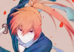 Hikaru is a soft-featured young man with orange-coloured hair and a lean physique, roughly on a height with Kentaro himself. He seems to carry himself with the assurance of a warrior. His attire consists of a red kosode and white hakama.[1]