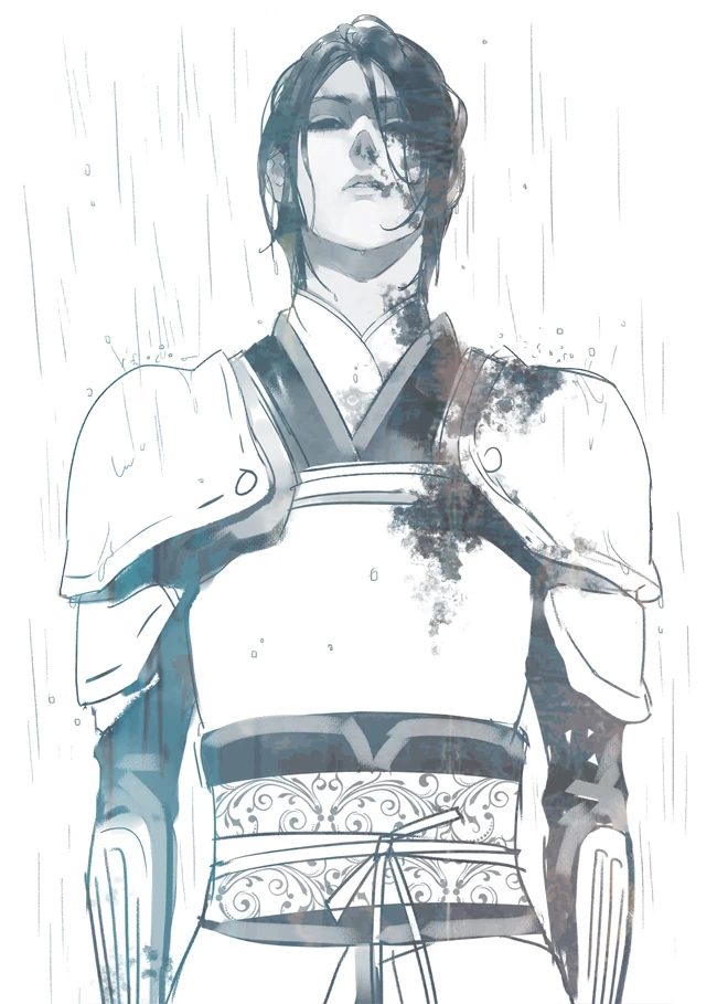 Kazuki's design is based upon a piece of artwork that the author found while browsing for imagery of Samurai.