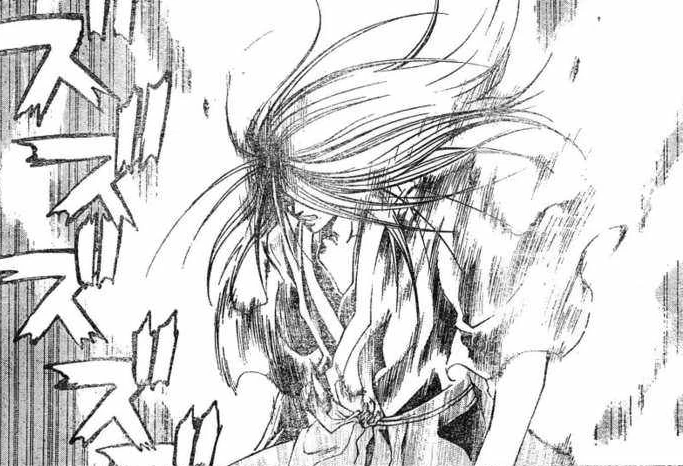 Kenji is kind, helpful and generally an all around nice guy;[7] at least until you piss him off, at which point you'll be lucky to escape with your life.[8] Kei Yume went as far as to say that excessive violence wasn't Kenji's way and that the violence propagated by his doppelganger just wasn't in-line with Kenji's character,[9] though the validity of this statement was later called into account when Kenji revealed this doppelganger was in fact his manifested Hollow powers; which had once supplemented Kenji's rage centers enough that he ripped a man's head off after crushing his windpipe.[4] As such by no means is Kenji the gentle lamb some paint him as; he'd as quickly kill some people without a shred of remorse, and has often done so even when the option of mercy could have been entertained. Following Kenjiro's brutal attack on Van Satonaka, for example, Kenji vowed to see his attacker dead, and even took one of Van's haori with him just as a reminder of that vow.[3] He has worn it even after exacting his vengeance. He was also easily angered and prone to fits of rage, especially in his youth, which tended to get him into trouble; especially with Anika Shihōin, though even as an adult he can still sufficiently lose the head and go on a rampage.[10][11] He also became less perceptive as a result,[8] though this did lesson in later years; for he always fought against Averian whilst enraged and suppressed his Inner Hollow with much the same emotion ruling his thoughts.[12]