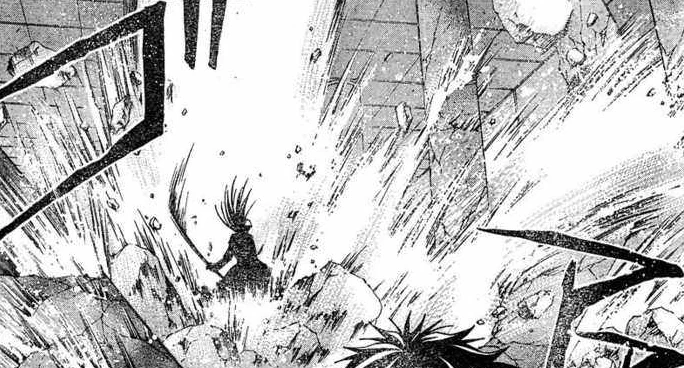 As time progressed Kenji has mellowed tremendously, to the point he told Averian that his head could not be bought with cheap taunts.[19] He rarely engages in battles at all anymore and when he does he takes his time, almost as if he where out on a leisurely stroll. He only loses his temper rarely and likes toying with his opposition; the latest victim of this was Oda.[20] He acts even worse when alongside Kusaka, in part to their childish tendencies and general rivalry. The two easily dominated Oda during the initial stages of their conflict, and even when Oda seemingly took the upper-hand against them by temporarily sealing their Shinigami power, the two where merely playing at a charade to demoralize the man. They even came to a shared agreement that they'd let Oda return to his old legendary strength just so they could test the depths of their own powers against him, safe in the belief that if they failed to finish him, their fused state, Jiyū, could do so easily.[20] However, when outmatched, Kenji knows his limits and when to ask for help. When faced with a revived Averian he immediately put a plan into motion that would hopefully result in him and Kusaka gaining the necessary power to topple their adversary.[21]